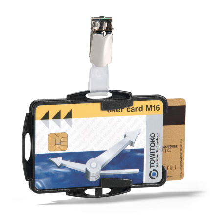 Etui na dwie karty identyfikacyjne 54x85 mm z klipem, kolor czarny. Opakowanie 25 szt.